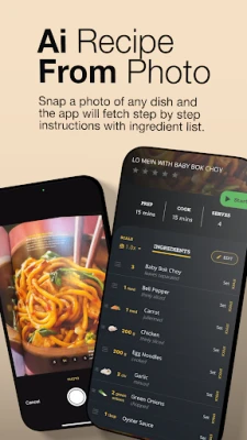 ◆ Dish Photo to Recipe & Cookbook Scanner: Turn any food photo or physical cookbook recipe into a digital format, complete with ingredients and cooking instructions.
