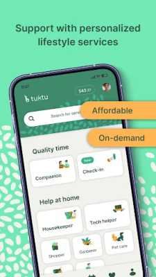 • Helpers at home – A variety of household services to help aging at home. Book a friendly Tuktu for housekeeping, tech help, shopping, gardening and more.