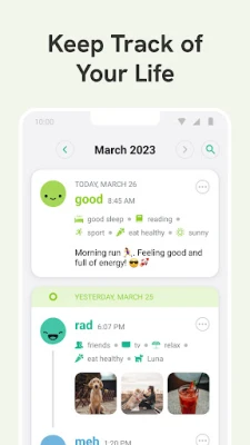 Daylio is a safe space for your feelings, thoughts, and growth. It's your personal companion for better self-care, improved mental health, and increased wellbeing.
